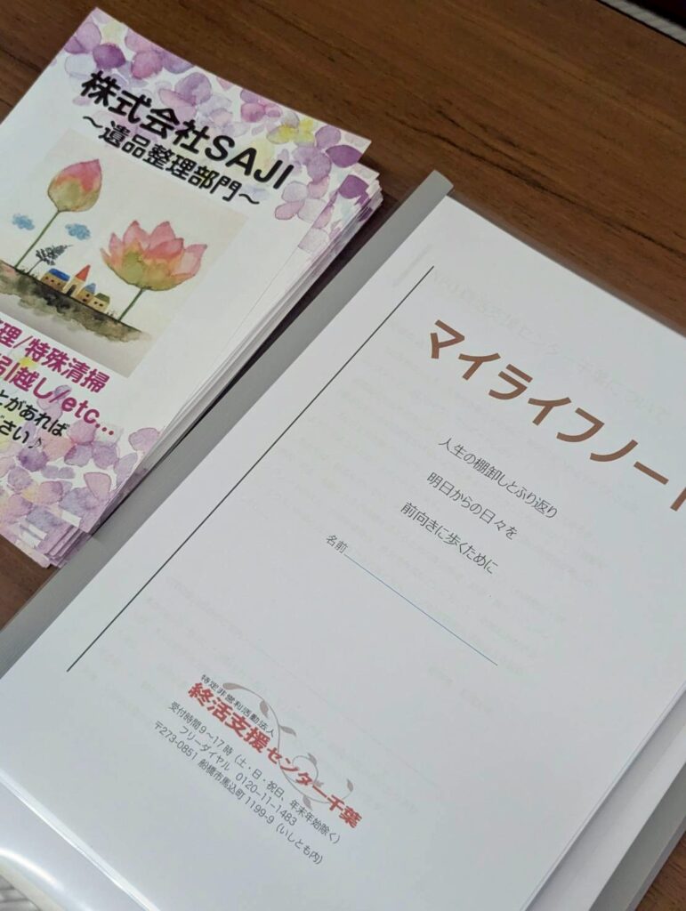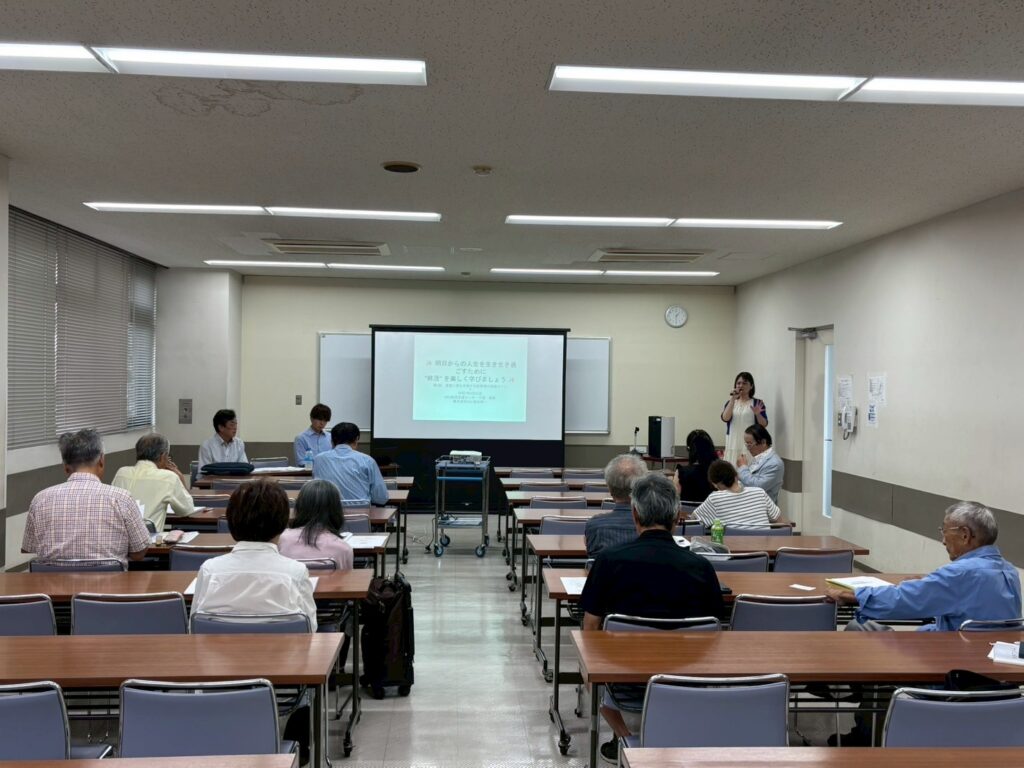 ・家の中の安全・安心(履いていない靴の処分や転倒防止など)・よくある持ち物の見直し(洋服、着物、食器、アルバムなど)・大事な物の確認(通帳、印鑑、保険証券、権利書など)・家族への安心(エンディングノートなどに伝えたいことを記すなど)などがあり、これらを少しずつやっていくことが大事だとのお話がありました。