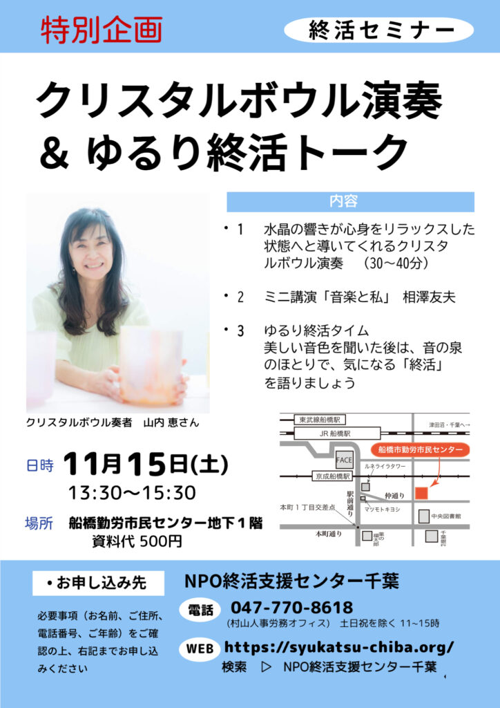 11月15日(土) 13時半〜15時半に終活セミナーを行います。